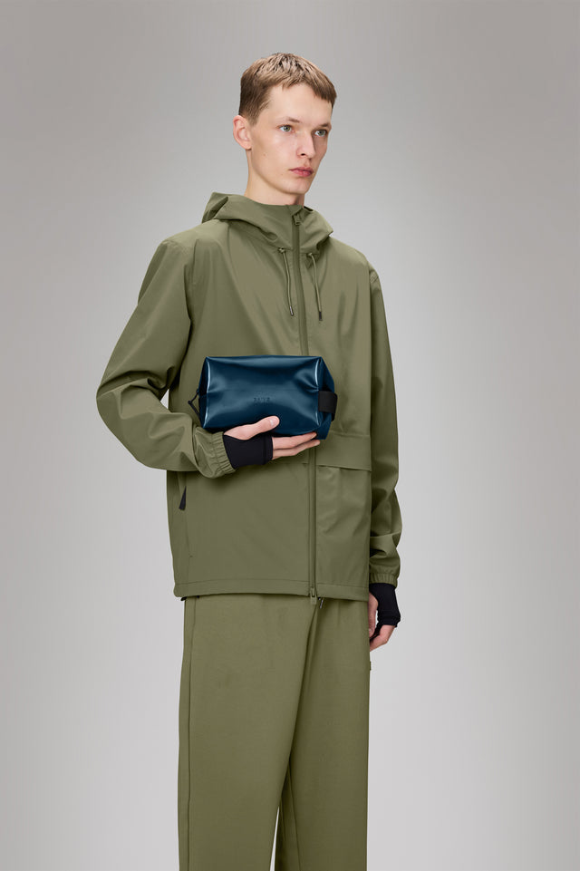 Wash Bag Small is cut in Rains’ signature waterproof PU fabric, engineered for carrying strength, durability, and a smooth feel.