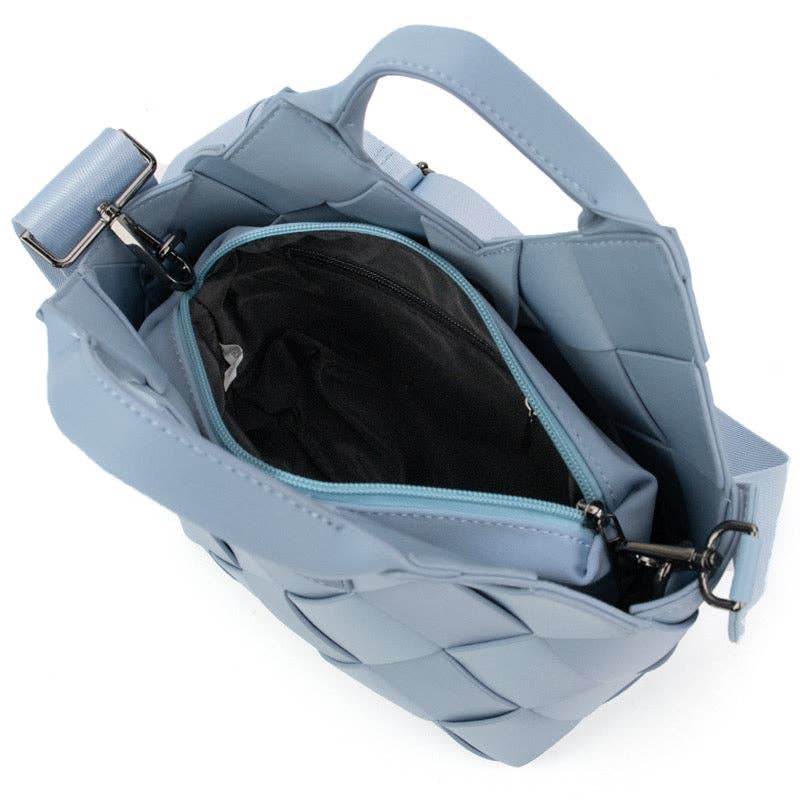 Featuring a lightweight, durable woven texture, this crossbody offers both functionality and flair. A detachable strap ensures versatile wear as a tote or crossbody, adapting effortlessly to your day. Ideal for running errands or traveling light, it's your go-to for sustainable, stylish accessorizing.
